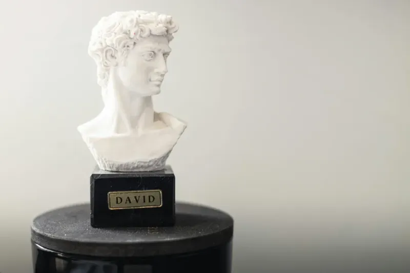 The shop offers collector's items, including busts and figures from Renaissance works—such as Michelangelo’s San Matteo—and specific anatomical replicas like miniature versions of David’s head. These pieces can reach prices of 300 euros.